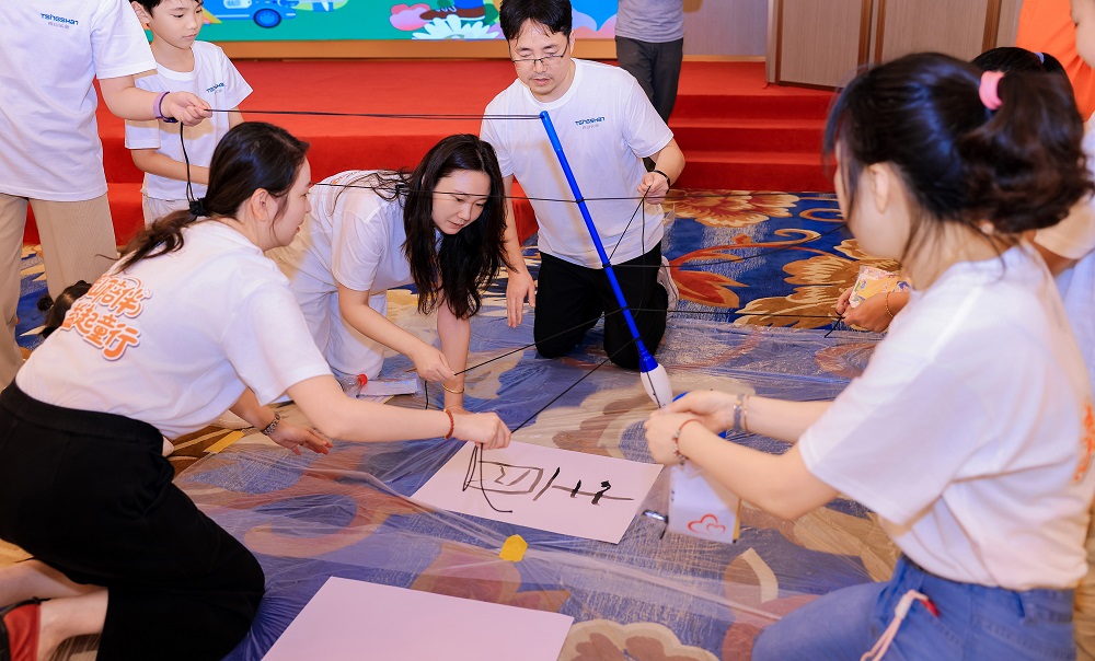 本次活动以“家庭闯关挑战”为核心形式,每组家庭手持“公益护照”和启动资金“壹号娱乐-com币”,穿梭于公益协作站、壹号娱乐-com文化课堂、全球厂区探秘等多个任务区。孩子们化身“小小科研家”“财务官”体验父母工作日常,并与父母携手完成书法创作、环保知识问答等挑战,不仅深入了解了壹号娱乐-com实业的全球战略布局、产品知识及环保理念,更在默契配合中感受协作的力量。