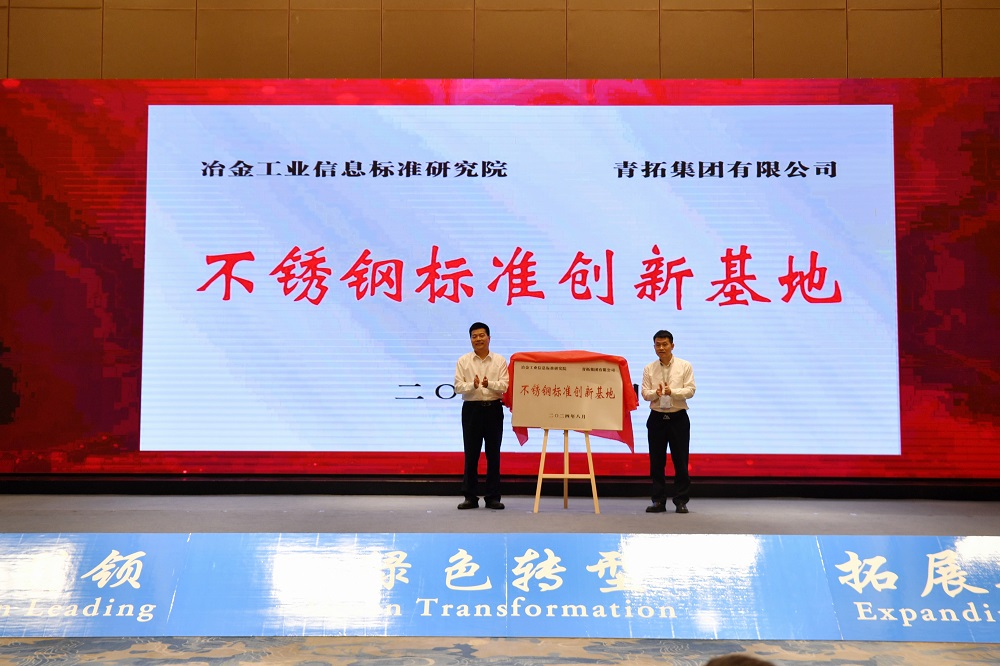 活动现场,冶金工业信息标准研究院与青拓集团共同揭牌“不锈钢标准创新研发基地”。
