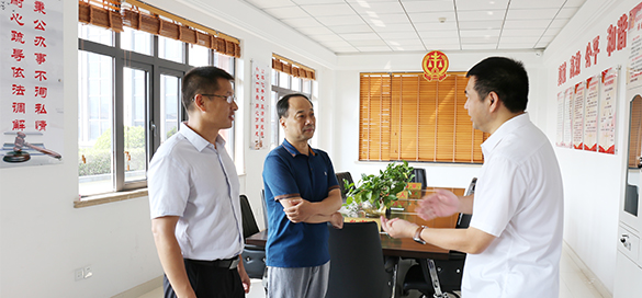 杨德星一行参观了法务工作室、人才驿站、篮球馆、羽毛球馆、游泳馆、图书馆等场所。钟盛江详细介绍了集团工会的发展历程及现状,及“共享职工之家”和“党建带工建”平台创建和工作开展情况,并介绍了集团丰富的业态资源及每年组织的职工运动会、联谊相亲、职工技能大赛、羽毛球赛等多项主题活动。
