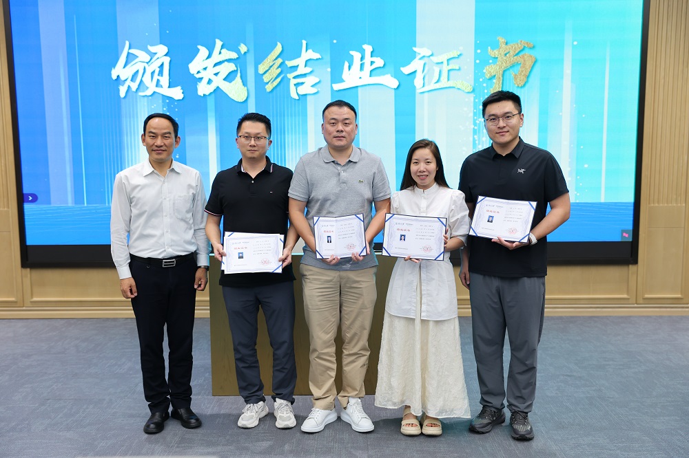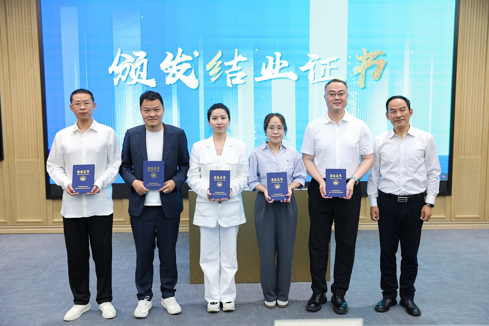 在表彰环节中,温州市工商联党组成员、副主席陆千帆分别向获得“勤学先锋奖”“组织贡献奖”的学员颁发了荣誉证书及奖品,壹号娱乐-com国际商学院(筹)常务副院长叶建亮授予全体学员结业证书。