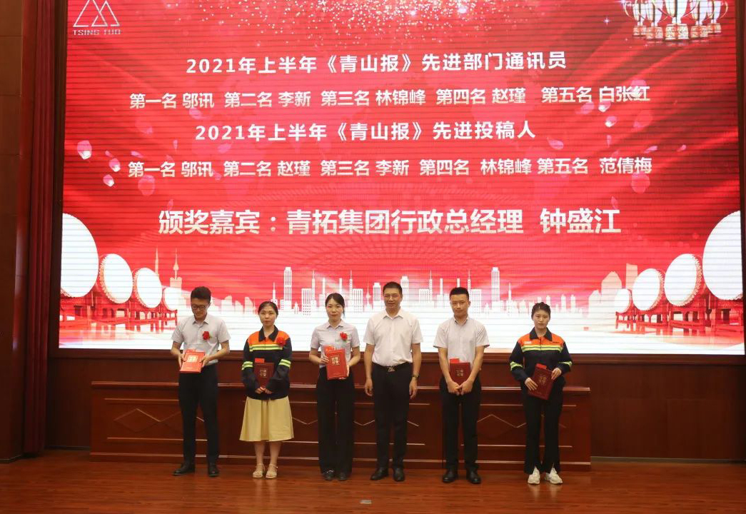 人力资源部部长刘永清宣读了2021年上半年先进员工、先进部门通讯员、先进投稿人表彰决定,共70余人获奖。钟盛江等领导分别为获奖者颁发了荣誉证书和奖金,并合影留念。