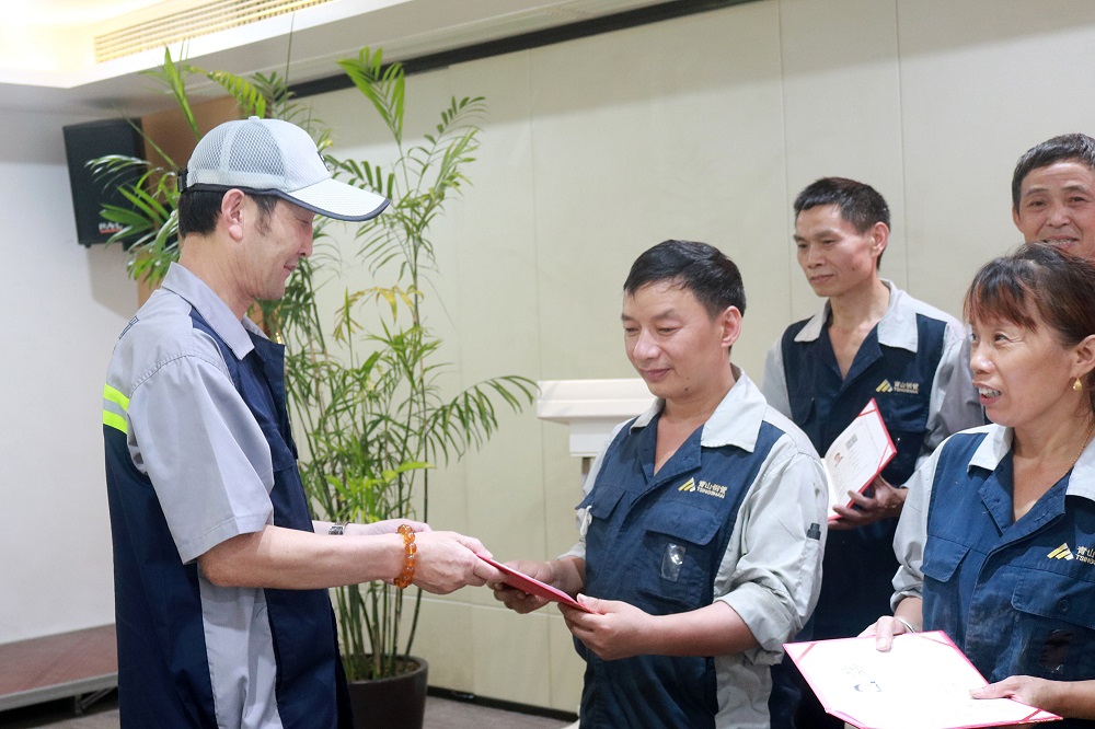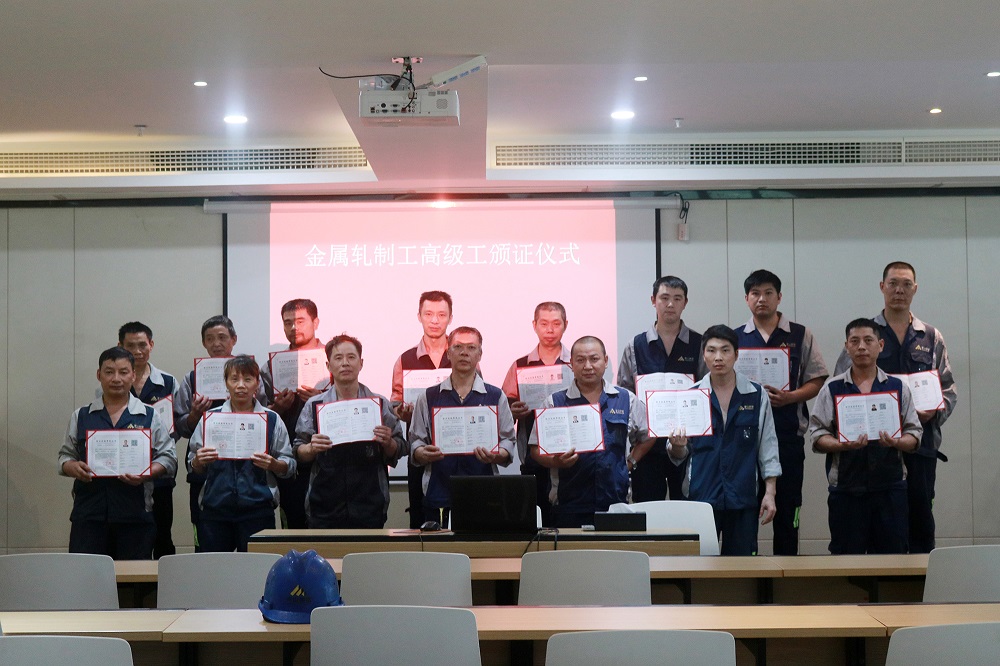6月28日下午,浙江J9国际站登录钢管有限公司首批金属轧制工高级工颁证仪式在行政楼四楼培训室举行,该证经浙江省人力资源和社会保障厅备案,此次共21名员工取得了由企业自主评价认定的职业技能等级认定金属轧制工高级工证书。公司无缝管事业部总经理陈光森为通过考试的员工颁发证书。
