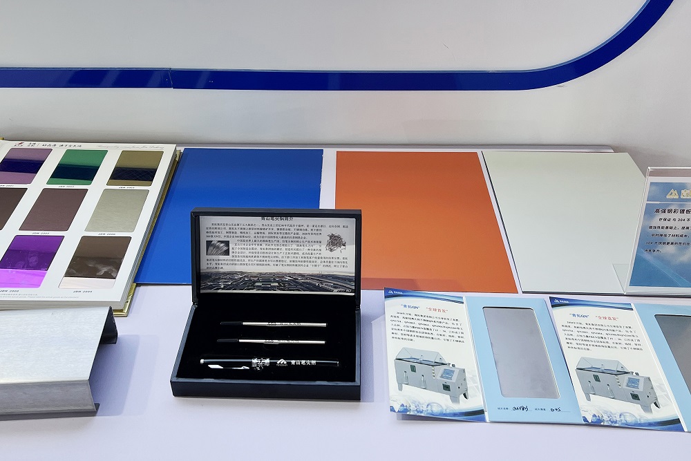 本届海创会,青拓集团0.03mm手撕钢、环保型易切削笔尖钢及高耐蚀QN系列等十余件代表产品在宁德馆和创新成果展二十周年馆集中亮相,并有企业专业人员现场讲解。展会人气高涨,福建省、福州市领导及到场嘉宾纷纷对不锈钢新产品赞赏有加。
