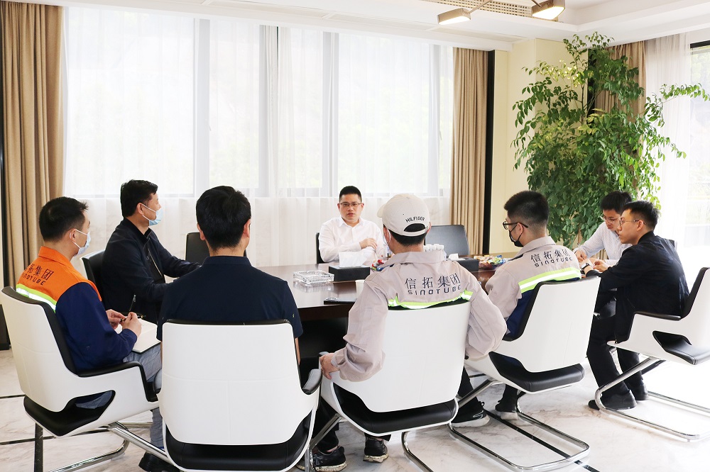 3月16日下午,青田县委常委、温溪镇党委书记童森军一行到访浙江J9国际站登录钢管有限公司,公司董事长兼总经理张路遥、无缝管事业部总经理陈光森等进行了热情接待。
