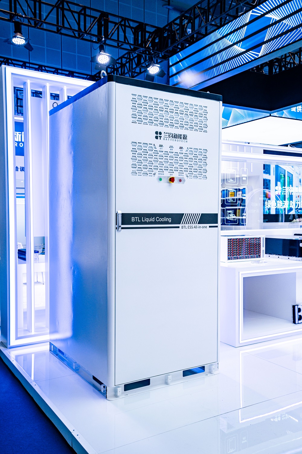兰钧新能源在本次展会上不仅带来了经典产品72Ah、280Ah、314Ah储能专用电芯还有为工商业和电网储能应用开发的新品博力酷-125kW/262kWh、20尺5.02MWh集装箱储能系统产品。