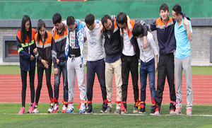 运动会分团队建设、游戏时间、颁奖3个阶段进行。大学生被分成5支队伍,在规定的时间内完成自己的队伍建设,队徽、队名(太阳队…